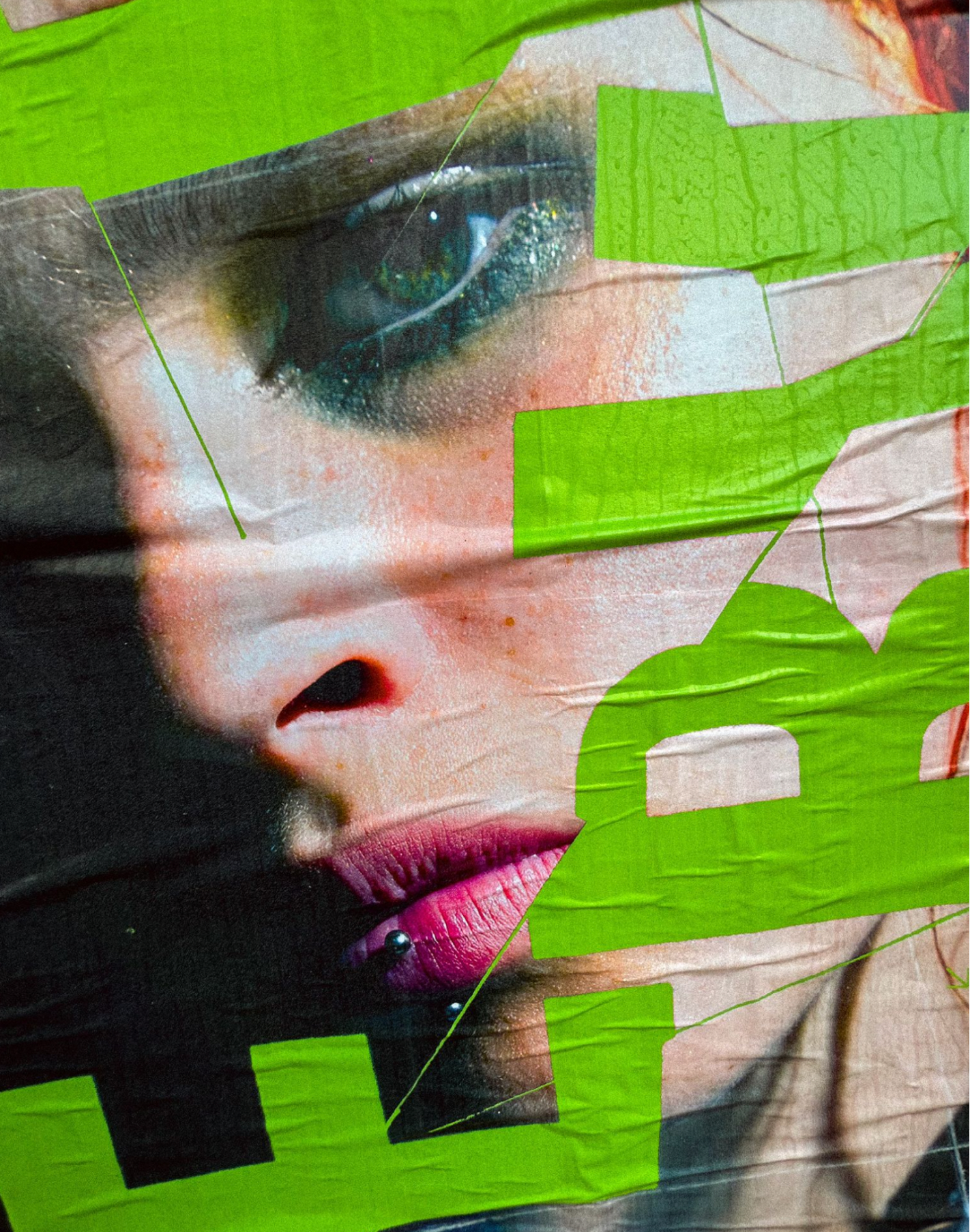 Lettering was developed through analogue experiments, referencing their mixed-media practice and blending tactile, analog textures with the possibilities of the digital era, creating a distinctive identity that mirrors their boundary-pushing creative vision.