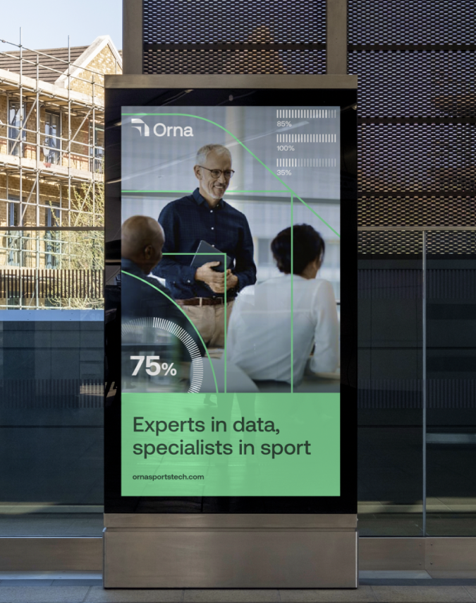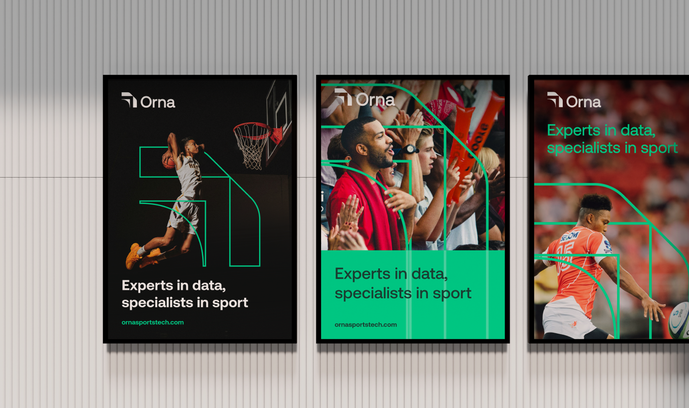The visual identity combines the energy and momentum of sport with the complexity of sports data visualisation, representing layered insights that drive smarter decisions. In an industry where the business of sport moves fast, Orna’s brand communicates progress powered by data.